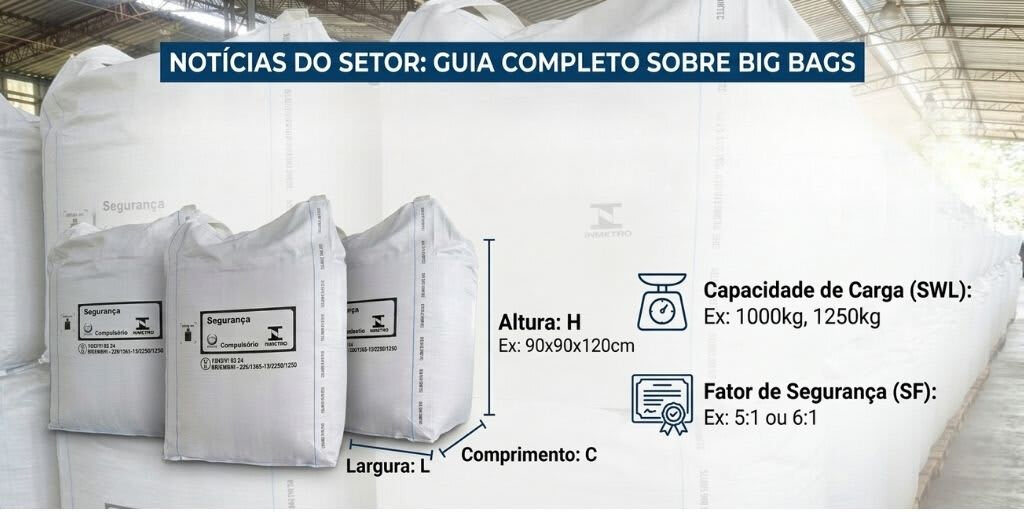 Big bag não é “tamanho único”. Medida, capacidade definem se a operação vai rodar com segurança, produtividade e custo previsível. Quando erra, o preço aparece em forma de rasgo, vazamento, tombamento, retrabalho e risco no içamento.